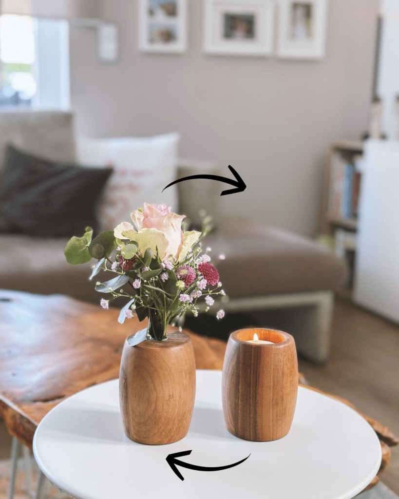 Gedenklicht und Vase aus Walnussholz, unbehandelt, naturbelassen