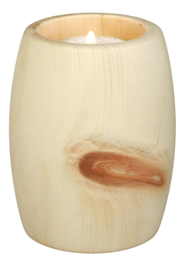 Gedenklicht und Vase aus Zirbelholz, unbehandelt, naturbelassen