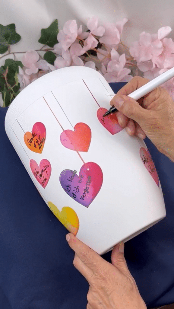 Alle unsere Urnen sind handgefertigte Unikate. Somit können geringe Abweichungen von Motiv und Farbe entstehen.