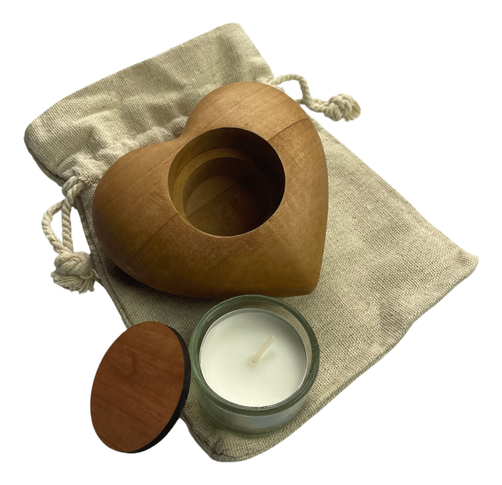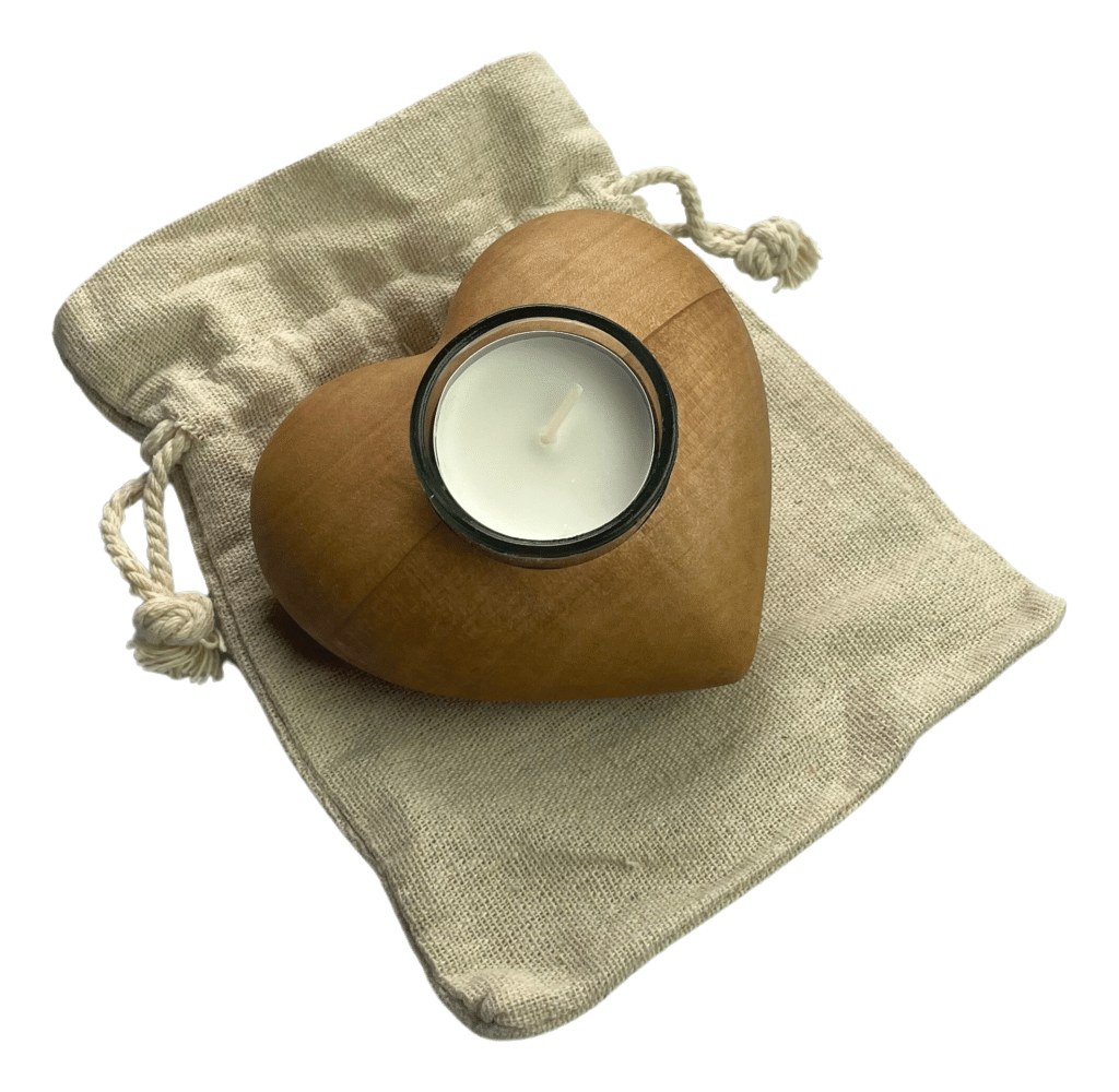 Gedenklicht aus Birnenholz mit Gedenkkammer unter dem Teelicht, unbehandelt, naturbelassen